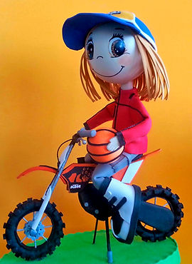 En esta fofucha la moto se realizó a escala de la original de la niña, muy deportista e inquieta.